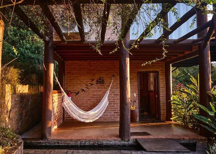 Olhando para o jardim, Pousada Murmúrio das Águas São Francisco Xavier de 6 quartos está localizado a 15 minutos de carro da Pedra Partida. Este hotel também inclui o estacionamento.